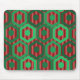 This mouse pad has a geometric design of hexagons in four shades of green on a field of stripes in two shades of red.