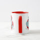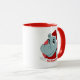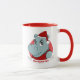 Christmas mug with an illustration of a cute happy hippopotamus with a red and white Santa Claus hat; Christmas holidays design with customisable text template for your name or message