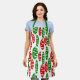 This apron has a repeating pattern of ovals in red and green with scattered white ovals all on a field of white. Wear it while you cool your Christmas dinner.