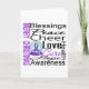Celebrate the Christmas season and remember those fighting Alzheimer's Disease with awareness merchandise featuring beautiful floating purple ribbon to represent Alzheimer's Disease support and advocacy set inside a snowglobe with falling snow flakes surrounded by a collage message of Blessings, Peace, Cheer, Love, Health, Cure, Hope and Awareness. The Alzheimer's Disease snowglobe image is available on shirts, greeting cards, postage stamps, bags, hats, buttons, stickers and more.
