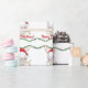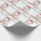Cute and festive Christmas bunny with Santa Claus hat and holding holiday lights.