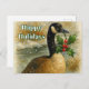 This holiday postcard showcases a watercolor illustration of a Canadian Goose adorned with holly leaves and berries. The greeting can be customized, or purchased as displayed with "Happy Holidays."