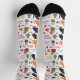 Step into the holiday spirit with these incredibly fun and festive ankle socks! Featuring an all-over pattern of adorable tabby and black cats dressed in Santa hats, this design is sprinkled with classic Christmas elements like trees, ornaments, and gifts. The pattern also includes playful cat-themed holiday puns and congratulatory phrases like "FELIZ NAVI-CAT!", "PURR-FECT HOLIDAYS!", "YOU DID IT!", and "CONGRATS!". These comfortable, celebratory socks are the ultimate accessory for cat lovers, Christmas parties, or as a unique stocking stuffer. The white background makes the vibrant, whimsical pattern truly pop.