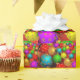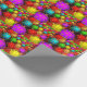 Christmas Wrapping Paper with shiny Christmas tree decorations in bright colours of yellow, red, green, pink and turquoise. All design elements are printed.
