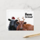 These two angus steers are dressed up in holiday garb for the seasonal celebrations this Christmas! The big black angus cow is wearing a fluffy red and white santa hat with a pompom, and the red angus has a fuzzy pair of fake reindeer antlers to match his brown fur. Personalise any item with your own name or beef related food or farm business.