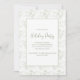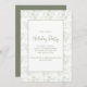 This design features a Christmas holiday party elegant floral, a green sage flower simple pattern, a QR code scannable map and directions, trendy stylish calligraphy script font, whimsical typography text style, botanical simple minimalist greenery, festive flower foliage leaves, classic modern traditional design, Christmas holiday party invitations, family corporate get together party