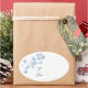 Holiday gift tag sticker is shown with a winter blue snowflakes print, Text of To: & From: on sticker for your gift recipient.