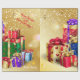 Christmas Wrapping Paper with Christmas Holiday Gifts and Wishes, Personalised on gold luxury background. Happy Merry Christmas and New Year, Birthday, Holiday Party, beautiful Wrapping Gold Paper for Lovely Christmas gifts Decoration. XMAS Wrapping Paper decorated with Christmas magic symbols, winter snowflakes, holiday gifts boxes elements gold pattern, snowman, christmas tree, christmas ball, snowflakes and more festive characters. Original trendy graphic design. Crafts & Party Supplies > Gift Wrapping Supplies > Wrapping Paper. Personalise them by adding name or wishes text.