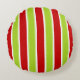 Christmas Holiday Green & Red Stripes Pattern Round Cushion