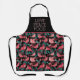 This apron features a modern bird, berries, winter foliage pattern design with LOVE PEACE FOOD message