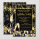 Champagne Holiday Christmas Holiday Party Invitation. Corporate Xmas Party. Elegant gold & Black snowflakes baubles with gold sparkle glitter and snow. Please Note: All flat images!