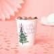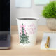Christmas holiday party cups with Christmas tree and pink bow. Oh what fun!