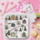 Creative holiday party plates featuring Christmas village including a gingerbread house.
