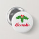 Christmas Holiday pinback buttons with custom name. Cute simple pin button for Christmas party at home or office. Festive holly leaves and berries design with elegant brush script typography template for names. Create your own personalized name badge buttons for home, event, corporate office party etc. Handy for friends, family, guests, coworker, employees, colleagues etc. Available in small, standard and large sizes.