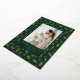 Bring a touch of nature-inspired elegance to your holiday greetings with this beautifully detailed photo card. The deep forest green background is covered in a delicate pattern of ferns, pine sprigs, and berries, all shimmering in rich gold foil. Your favorite family photo is classically framed and the "Merry Christmas" greeting below is beautifully accented in matching gold foil, giving your card a truly luxurious and botanical feel.