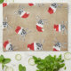 Christmas Holiday Pirate Skulls on Biege Tea Towel