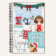 Christmas Holiday Recipe Book Cookbook Custom Name features a cute watercolor illustration of a girl baking in a festive kitchen as the snow falls with her dog wearing a Santa hat. The text "It's the most wonderful time of the year" is written in hand lettered calligraphy script. Perfect for Christmas and holiday gifts. Personalise with your custom name and text by editing the text in the text boxes provided. Designed by ©Evco Holidays www.zazzle.com/store/evcoholidays