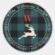 Christmas Holiday Red Monogram Deep Teal Gingham Classic Round Sticker