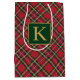 Christmas Holiday Red Plaid Gold Foil Monogram Medium Gift Bag