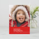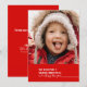 A very cheerful holiday red is the background for this years dose of holiday cheer The front of this flat card is personalised with one of your own favourite family photos. The caption reads "We wish you a Merry Christmas and a Happy New Year". The back side reads "From our house to yours" and has a space for your personalised family signature and the year. A single snowflake adds a festive touch. Matching envelopes are also available.