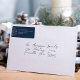 This design features a Christmas holiday navy blue silver return address label with a snowflake snow classic elegant design, a Christmas cute whimsical fun simple, Christmas holiday return address label, Christmas holiday envelope seal, a custom customised personalised family, with last name address city town, simplistic creative elegance minimalist, with white text font lettering simple, a block style lettering family name