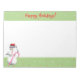 Notepad with my original design of a smiling snowman wearing sunglasses, holding a candy cane and tipping his hat while wishing everyone "Happy Holidays!"