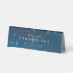 Christmas holiday tabletop party sign featuring stars. Great table tent sign for Christmas parties, galas, business events, and more. Blue and gold colours. Customise the text. Use the template to create your own tabletop party sign.