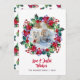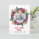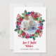 This chic holidays design features your favourite photo surrounded by a watercolor floral wreath of holly, Christmas stockings, poinsettias and candy canes in festive red and green. Below in modern red text "Love & Joyful Wishes" with your family name and year below in plum typography. On the reverse is a coordinating pattern of watercolor Christmas stockings and floral elements. Simply add your own photo and edit the text in the text boxes provided.