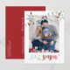 This design features Christmas holiday cute string lights, fun merry Christmas simple family photo, classic colourful festive red typography,1 one picture stylish trendy, modern elegant simple trendy, minimalist tree decoration trimming, modern calligraphy script font, whimsical Christmas string of lights, artwork by laura Lacina, a fun Christmas holiday tis the season photo cards