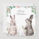 Christmas Holiday Watercolor Bunny. Rabbit, Floral Card