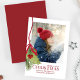 This design features a Christmas happy holidays greenery photo, with a one 1 single picture template, red and green holly berries, a winter greenery foliage botanical leaves, with pine tree branches branch berry, a watercolor red ribbon bow mistletoe, a lovely Christmas holiday photo cards, with a simple minimalist family photo, an elegant classic traditional Christmas, a stylish trendy calligraphy script
