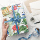 Christmas and Holiday wrapping paper for all your wrapping needs. The design includes snowman, sleds, pine cones, holly, and wooden stars.