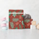 Christmas holly and pinecones in a seamless pattern with a dark-red background.