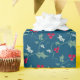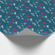 Festive foliage green holly leaves and red berries graphic art on blue background Christmas wrapping paper. Ideal for gift wrapping festive seasonal Christmas gifts. Graphic design by www.mylittleeden.com