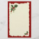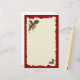 Christmas stationery, with vintage branch of holly and mistletoe berries and ripped paper sheet.