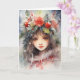 A halo bouquet of holly and berries and greenery on her head, this cute Christmas fairy dressed in a fur lined cape - wishing you holiday magic