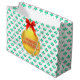 Beautiful gift bag with a big golden Christmas ball and Christmas holly berry pattern on white background. Merry Christmas text can be personalised.