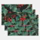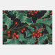 Christmas Holly Branches and Berries Wrapping Paper Sheet