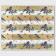 Christmas holly & bullfinch white & gold stripes wrapping paper