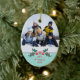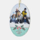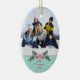This oval shaped ceramic ornament has a Christmas holiday design. At the bottom, there is a holly berry bush with the year and family name that is easily customisable with your text. At the top, you can add your own photograph. Copyright © Sarah Paris