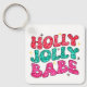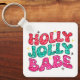 Christmas Holly Jolly Babe Modern Glitter Script Key Ring