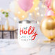 Christmas Holly Jolly Fun Winter Personalised Name Wine Tumbler features the text "Holly Jolly in red and blue modern calligraphy script typography and personalised with your custom name. Accented with holly and snowflakes. Perfect gifts for Christmas and the holidays or for Christmas parties. Designed by ©Evco Holidays www.zazzle.com/store/evcoholidays