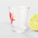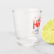 Christmas Holly Jolly Fun Winter Personalised Name Shot Glass features the text "Holly Jolly in red and blue modern calligraphy script typography and personalised with your custom name. Accented with holly and snowflakes. Perfect gifts for Christmas and the holidays or for Christmas parties. Designed by ©Evco Holidays www.zazzle.com/store/evcoholidays