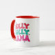 Christmas Holly Jolly Mama Modern Glitter Script Tea Coffee Mugs features the text "Holly Jolly Mama" in colourful modern glitter in red, green and pink. Perfect for gifts for Christmas and the holidays. Designed by ©Evco Holidays www.zazzle.com/store/evcoholidays