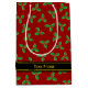 Christmas holly decoration. Custom background colour. Seamless pattern. Custom text on both sides.