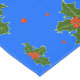 Christmas Holly Red Berry Pattern on Festive Blue Tablecloth