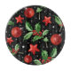 Seamless pattern with Christmas symbol - Holly leaves, snow, stars, balls on black background.