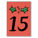 A Christmas holly wedding table number by Helen McCartney Designs.
