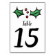 A Christmas holly wedding table number by Helen McCartney Designs.