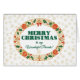 A festive Christmas card for Wonderful Parents, with a Christmas wreath of Holly, Ivy, Poinsettias, Fir Cones, Christmas Roses and a matching red bow, outlined in gold-effect, with gold-effect snowflakes on a white background. A custom front card in this series is also available.